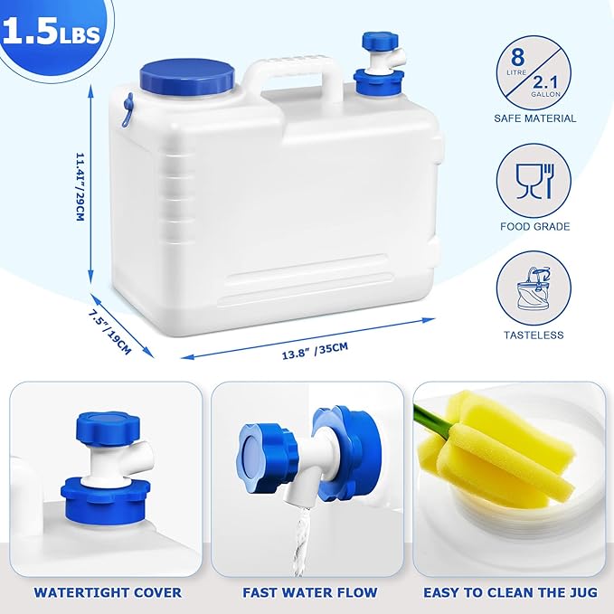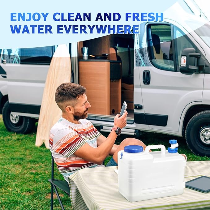 - Safe Material: this water container with spigot is made of PE material, odorless and safe, so water will not be affected; This water storage for camping is built to withstand rough outdoor conditions and rough handling