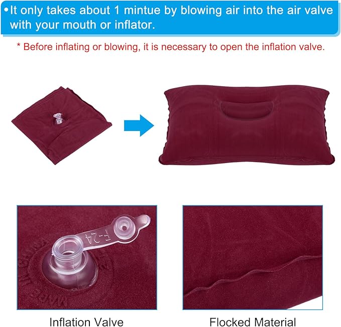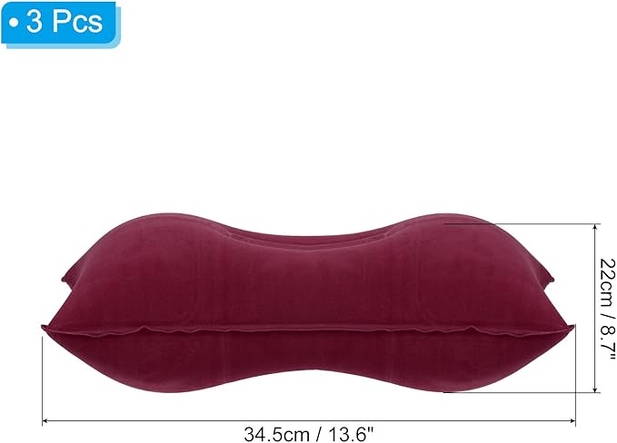 - Color: Wine Red; Overall Size: 34.5 x 22cm / 13.6 x 8.7 inch (L*W); Package Content: 3 x Inflatable Travel Pillow
