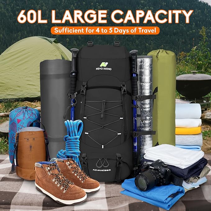 N NEVO RHINO Waterproof Hiking Backpack 50L/60L, Camping Backpack with Rain Cover, Hiking Travel Mountaineering Backpack