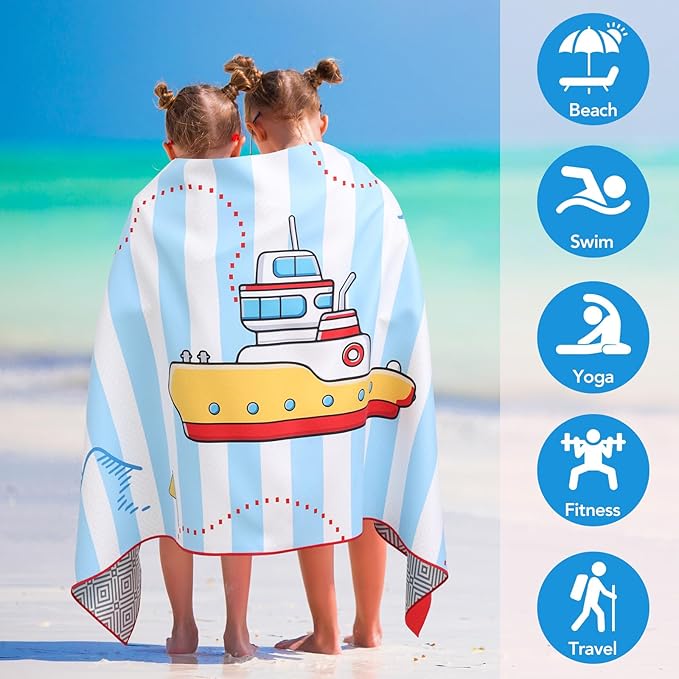 2 Pack Microfiber Beach Towel, Kids' Microfiber Pool Towel 58”x 28”, Sand-Free Beach Towel, Quick Drying Camping Towel, Super Absorbent Bath Towel Blanket, Soft Breathable and Lightweight