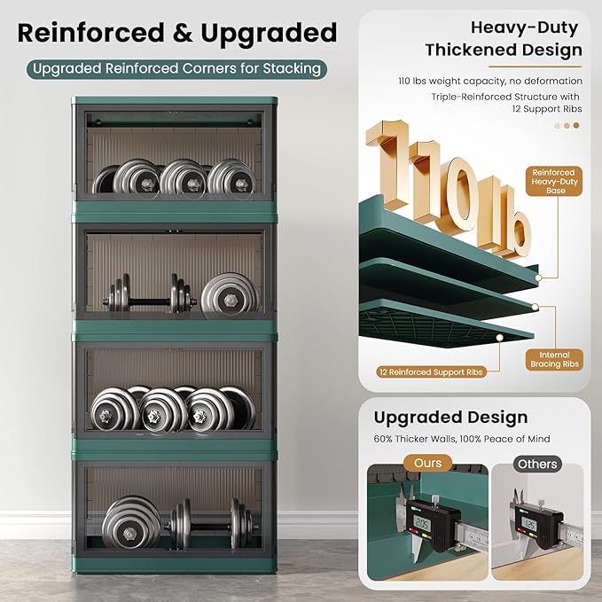 - Quick Assemble & Fold: Our storage containers can be assembled in 1 minute and folds down to 4 inches when not in use, easily tucking under beds/tight spaces—saves 80% of space. Heavy-duty PP plastic (2mm thick walls) supports 110 lbs (50 kg)/pack