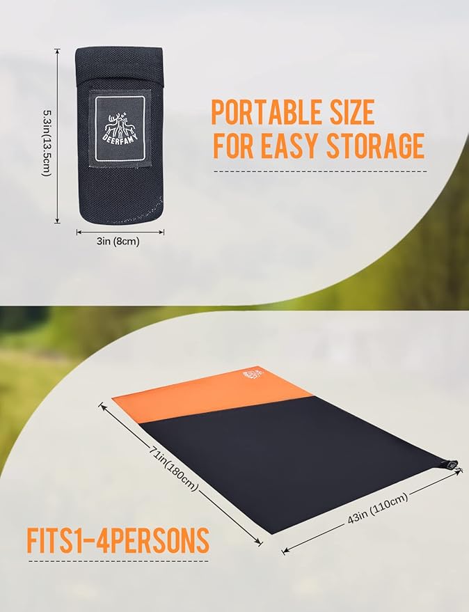 - 【Durable Material】DEERFAMY outdoor blanket is made of 400T nylon recyclable and eco-friendly material, which is lightweight, durable and tear-resistant, Prevent sensation caused by stones.. Recyclable materials have no odor and are more environmentally friendly.