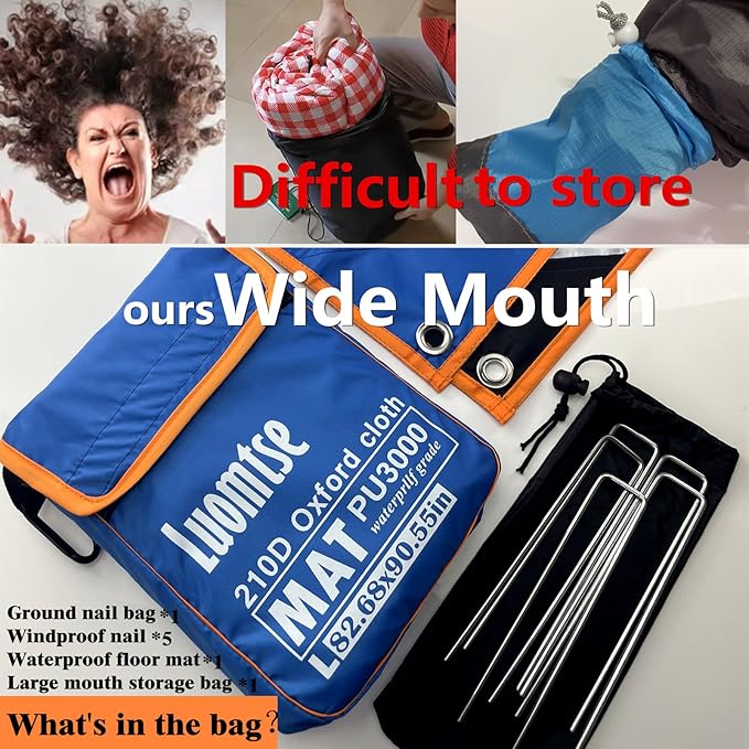 - 2、360-degree windproof: picnic blankets comes with 5 upgraded and thickened metal reinforced corner stakes, and the original U-shaped shape ensures that it can stay in place even in windy days. It's waterproof, windproof, and sandproof, folding beach blanket making it perfect for any outdoor activity.