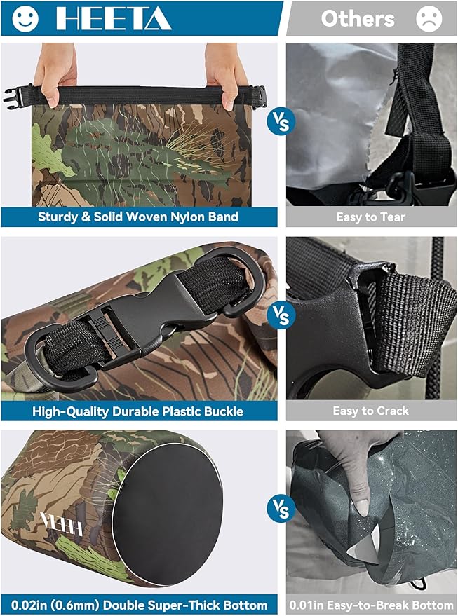 • Durable - Made of 0.02 in (0.5 mm) thick upgraded wear-resistant PVC material, it's suitable for all kinds of outdoor activities. Waterproof bag is well adapted to various weather and environment.