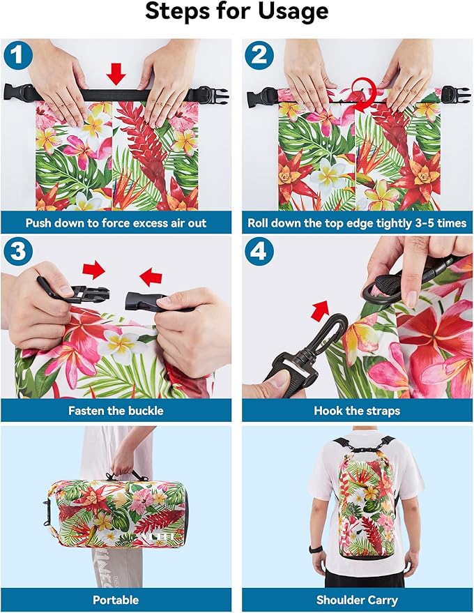 • Durable - Made of 0.02 in (0.5 mm) thick upgraded wear-resistant PVC material, it's suitable for all kinds of outdoor activities. Waterproof bag is well adapted to various weather and environment.