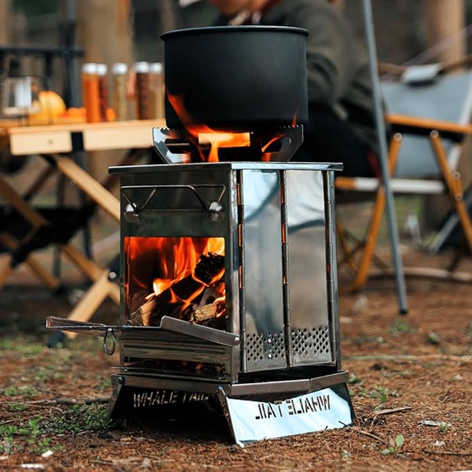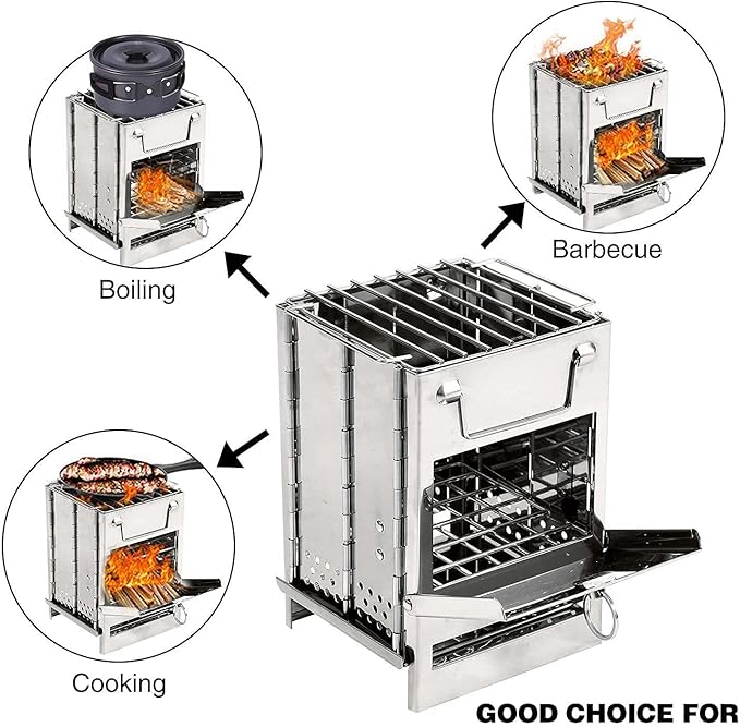 - Foldable & Portable: Folding camping wood burning stove made of stainless-steel materials, easy to carry, easy to clean.Assembles in seconds, no tools required. This camp stove can fit into your gear bag, the back of your car, and many other places!
