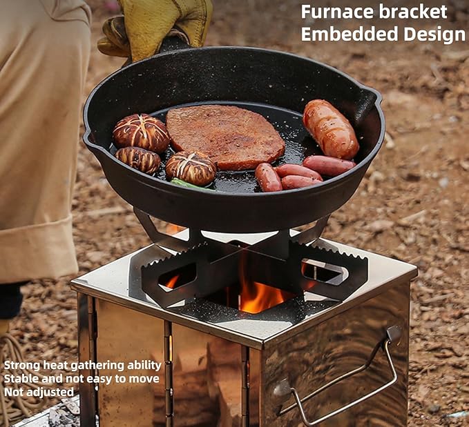 - Premium & Durable Material: Our wood burning camp stove is made of 304 stainless steel material, it's not easy to rust and has strong corrosion resistance, comprehensive heat evenly.Embedded design, strong heat gathering ability, stable and not easy to move.
