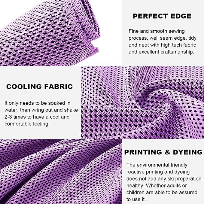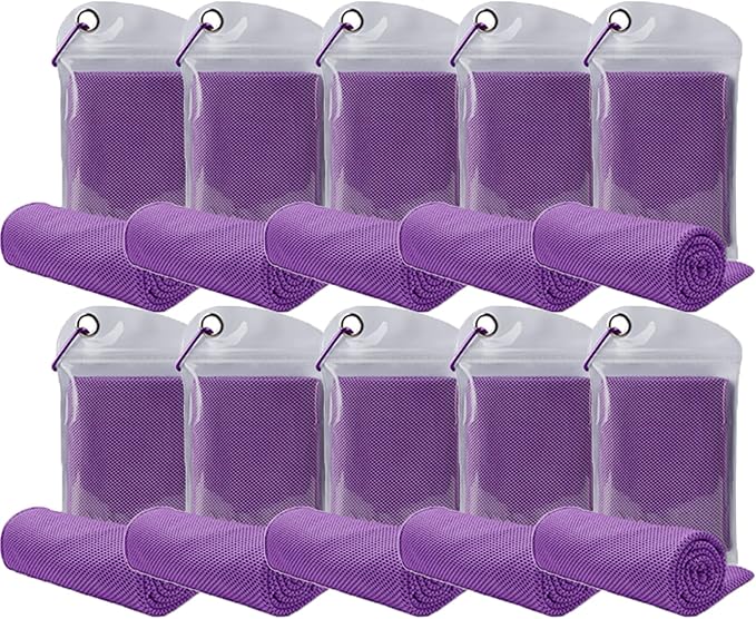 10 Pack Cooling Towels Bulk Microfiber Ice Towel Quick Dry Breathable Chilly Sweat Towel Stay Cool Towel for Neck Face Yoga Gym Workout Running Pilates Beach with Carabin Bag, 40x12'', Purple