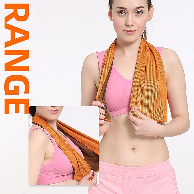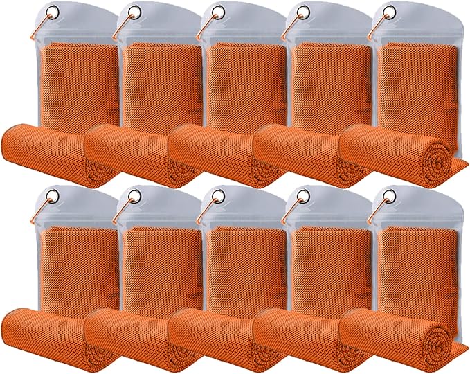 10 Pack Cooling Towels Bulk Microfiber Ice Towel Quick Dry Breathable Chilly Sweat Towel Stay Cool Towel for Neck Face Yoga Gym Workout Running Pilates Beach with Carabin Bag, 40x12'', Orange