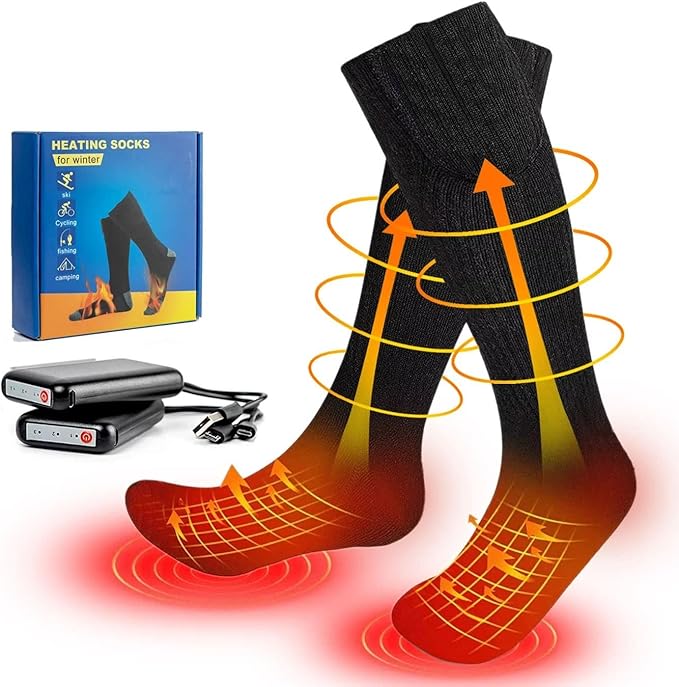 - 🔥【Soft Comfortable & Warm Heated Socks】: This Heated Socks Made from high-quality cotton, with excellent softness, breathability, elasticity and water absorption, thickened design, reinforced heel and toe, durable and very comfortable, perfectly wraps your feet. Prevent your feet from getting cold. Suitable for all kinds of outdoor activities, such as skiing, fishing, hunting, cycling, walking dogs, snowboarding, motorcycle, ridinghiking, running, shoveling snow, outdoor working, etc.