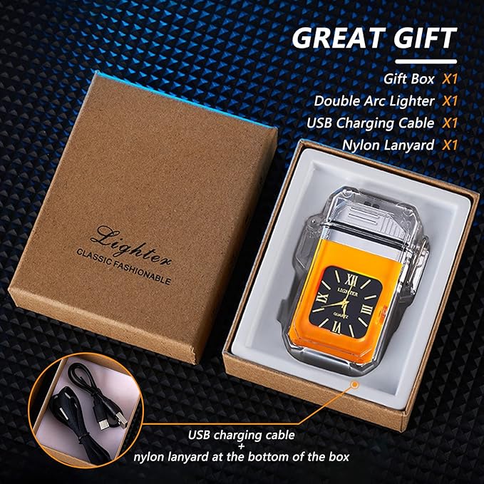 - 【✨Technology and Beauty Design】This electric lighter is designed with a transparent body and comes with a quartz waterproof dial and seven-colour dazzling lights, giving you a different feeling of combining technology and beauty.
