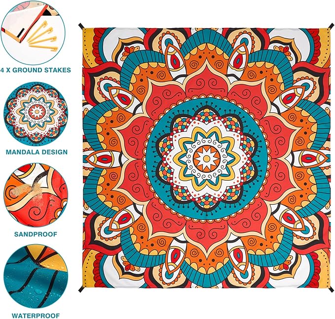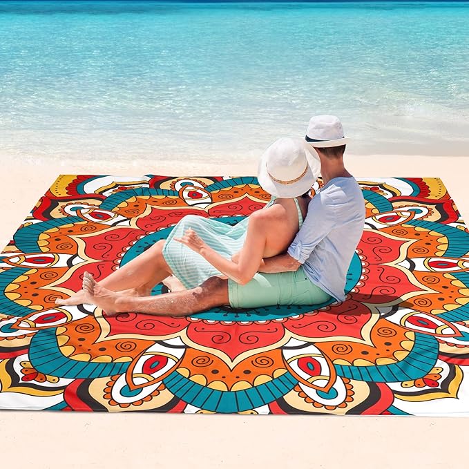 - ATTRACTIVE DESIGN: The beach blanket designed with unique mandala pattern, which are very stylish and personalized. The colourful flower and vibrant colour will make you be the centre of the crowd. Leave you a wonderful holiday experience!
