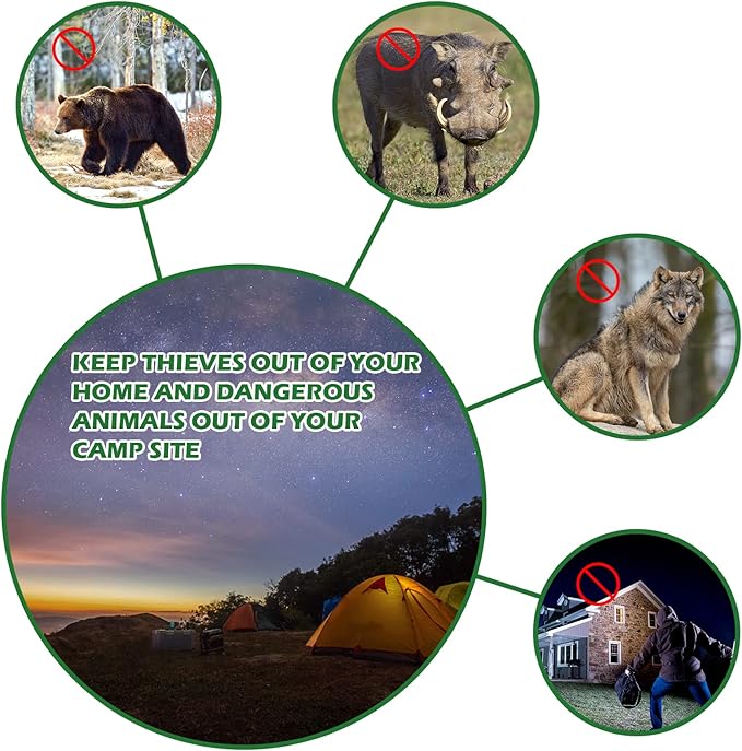 - Your First Line of Proactive Defense : The perimeter trip alarm protects homes, campsites, and property by setting up a perimeter around the area. It can be deployed quickly across paths and entry zones, attached to doors, gates, and more - Deploy to keep coyotes from livestock; keep thieves out of your home and dangerous animals out of your camp site. Whether you are looking to have an alert for intruders or scare off animals - our perimeter trip alarm is perfect for you