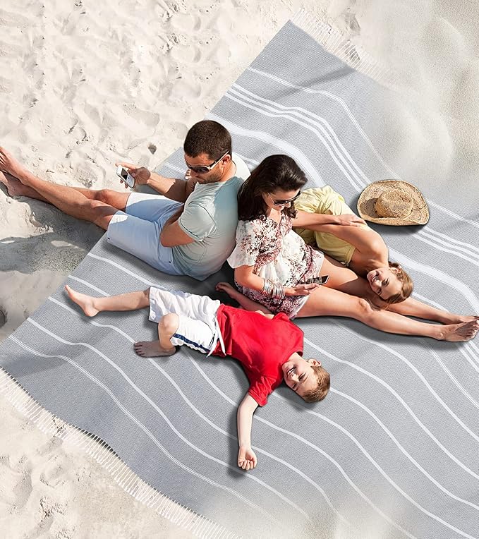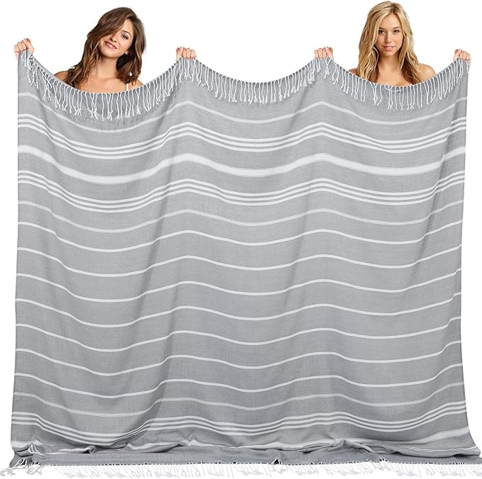 - [Compact And Lightweight]: Designed with your travel needs in mind. This towel is perfect for beach trips, picnics, gym, yoga, hiking, and camping. Its compact size allows you to easily pack it in your luggage or backpack, saving you space and making it easy to carry around. You'll never have to sacrifice comfort for convenience with this lightweight and compact Turkish beach towel.