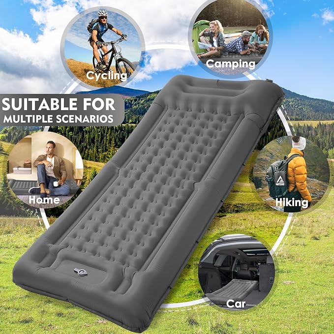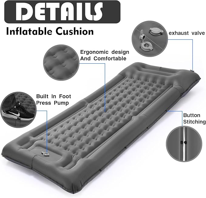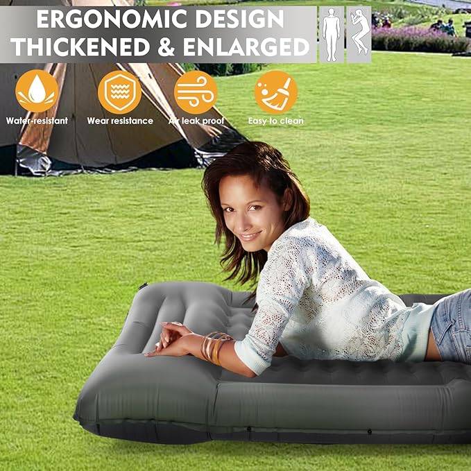 - Comfort Like a Bed:double sleeping pad thick after inflation. specially designed for rugged ground. Double sleeping pad for camping will keep your body away from the ground, insulating coldness and ensuring maximum comfort and warmth for your sleep.