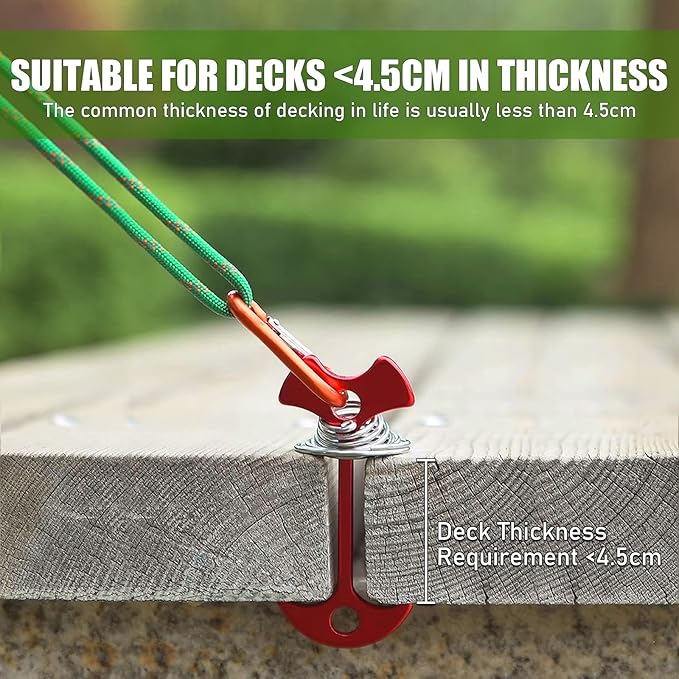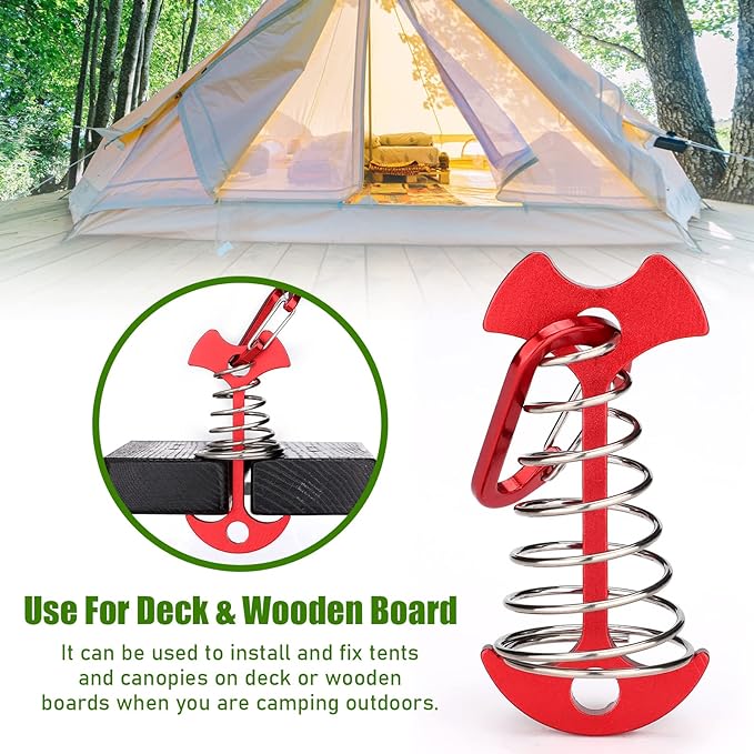 - 【Easy To Set Up & Remove】-- Just insert it into the gap and rotate it to fix it when installing the tent on the wooden board with gaps in the camping area. It can be installed without damage to the board. It will be more effective when combined with carabiner.