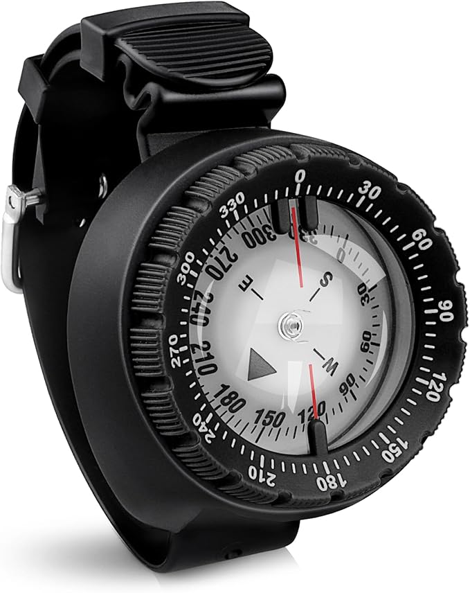 - SCUBA DIVING COMPASS - Our latest dive compass provides 50m waterproof performance for underwater navigation and includes a wide wrist mount strap to wear on your wrist while diving for hands-free navigation that's easily accessible.