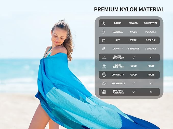- 【Waterproof & Lightweight】Nylon fabric materials, durable and breathable,water repellent , easy to clean, the beach blanket will last for years of use.