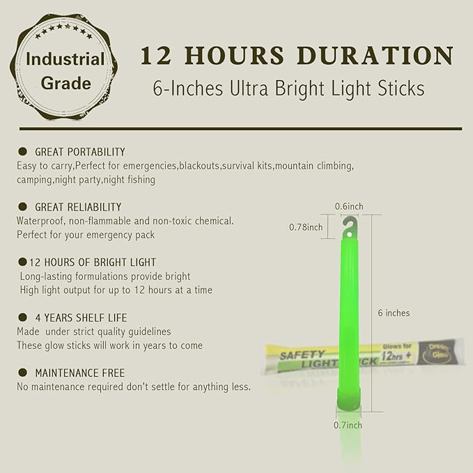 Industrial Grade Glow Sticks(12-90PCS) 6 inches Ultra Bright Emergency Light Sticks for Camping Accessories Hurricane Supplies,Earthquake, Survival Kit More Lasts Over 12 Hours……