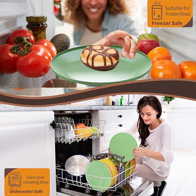 - 🌾【Reliable Material】Dinnerware set made from Wheat Straw and PP plastic. The material is BPA-free, non-toxic, odourless and safe.Replacing foam and plastic cutlery as a stylish, healthy and sustainable alternative.