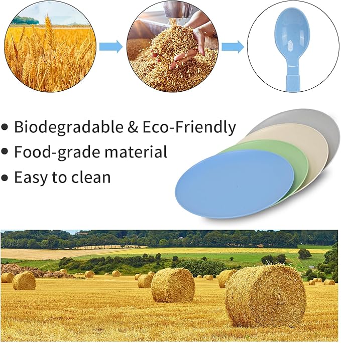 - 🌾【Reliable Material】Dinnerware set made from Wheat Straw and PP plastic. The material is BPA-free, non-toxic, odourless and safe.Replacing foam and plastic cutlery as a stylish, healthy and sustainable alternative.