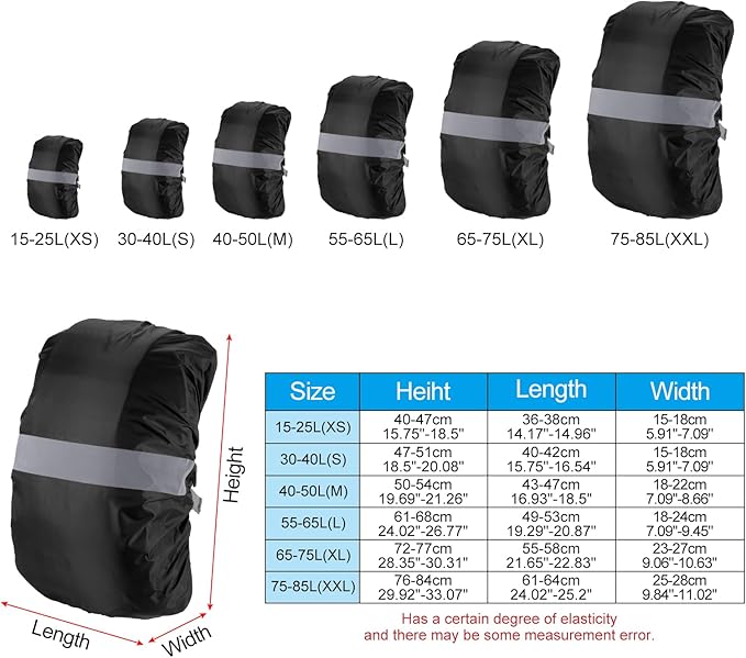 - Instruction: This rain cover fits most backpacks from 15 to 25 liters, ensuring that your gear stays dry in any weather condition.