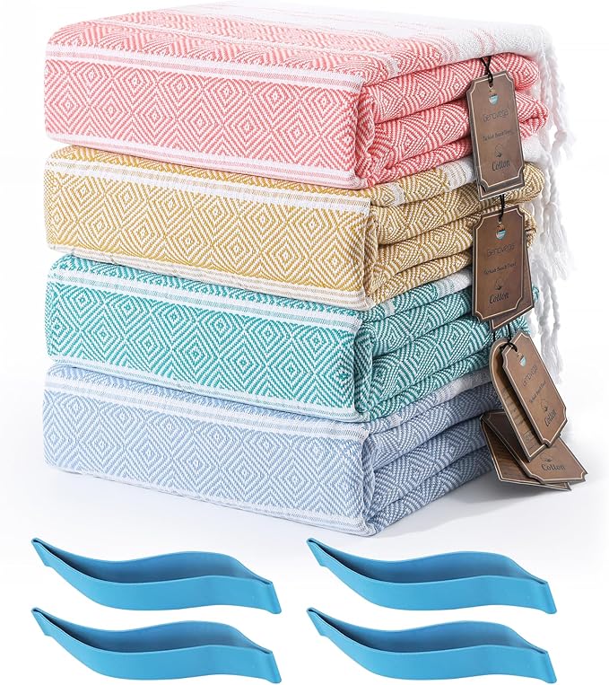 Genovega 4 Packs Turkish Bathroom Bath Towels Bulk Beach Pool Swim Towel Set Absorbent Quick Dry Extra Large Long Wide Multipack Adult Men Soft Cotton Luxury Hot Tub Spa Accessories
