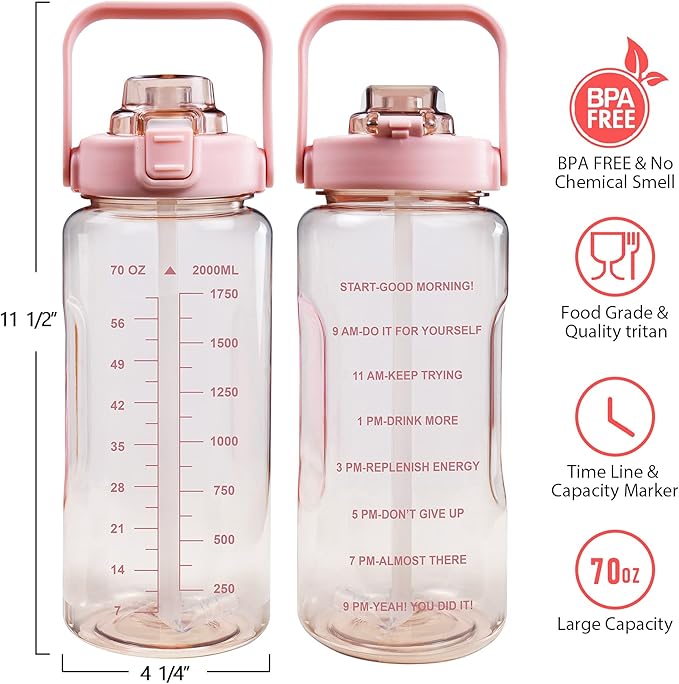 - IDEAL GIFT & GUARANTEE: Half gallon water bottle with time marker is a great gift ideal for your family and friends to help them keep hydrated and healthier. Our plastic big water bottle is a great gift for special occasions like birthdays. If you have any questions about products, please feel free to contact us, we will give you satisfactory solutions as soon as possible.