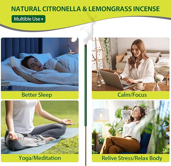 - NATURAL INGREDIENTS:Made with Citronella, Lemongrass, and Rosemary natural plant essential oils, organic mosquito repellent smells pleasant. DEET FREE and pet friendly, mosquito repellent incense sticks are safe for use around human and pets