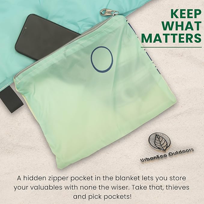 - STYLISH EYE-CATCHING DESIGN: Our designer beach sheet fits perfectly with nature. Great for taking impressive insta-worthy pictures. Use the integrated storage pouch to hide your belongings like keys, phones, small items or beach accessories. This portable beach picnic mat works best with your favorite towel on top to beat the heat and add padding. Spend the day soaking up the sun!