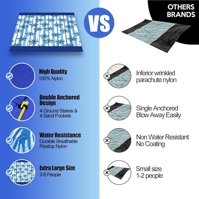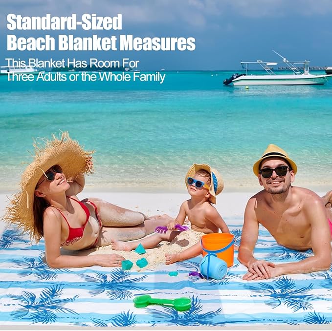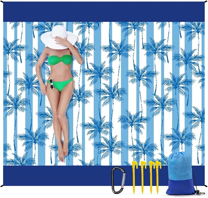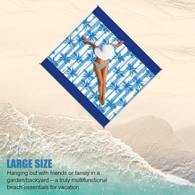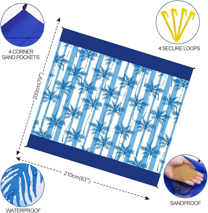 Beach Blanket Waterproof Sandproof Beach Mat Oversized 79" X 83" with 4 Stakes for 2-8 Adults, Soft and Durable, Sand Free, Light Weight, Perfect for Beach Travel Camping Outdoor Hiking