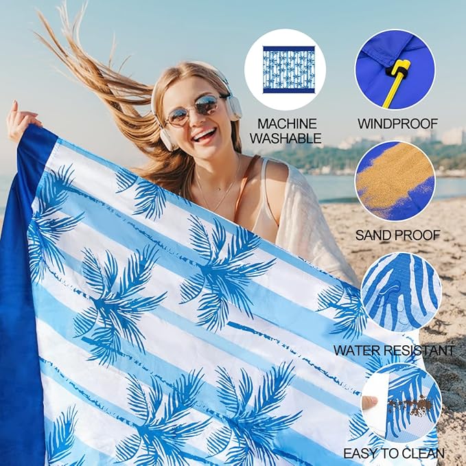 - Waterproof and Non-sticky Sand - This unique copyrighted sea turtle design beach blanket keeps you clean and dry in the outdoors. Beach Blanket is made of 210T polyester fiber, which can effectively prevent water and cracks from damaging it. Non-stick sand: Shake the beach mat gently to get rid of sand or other debris easily.