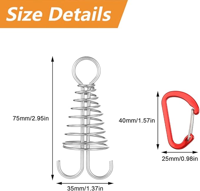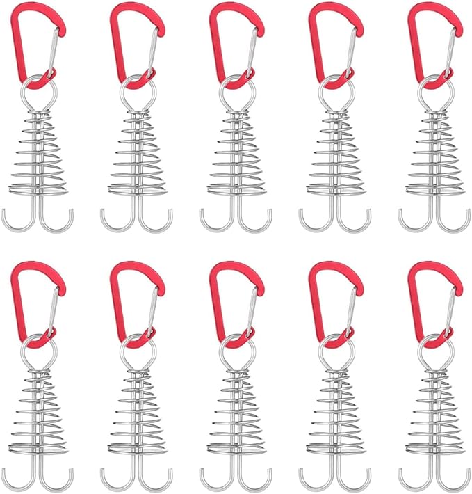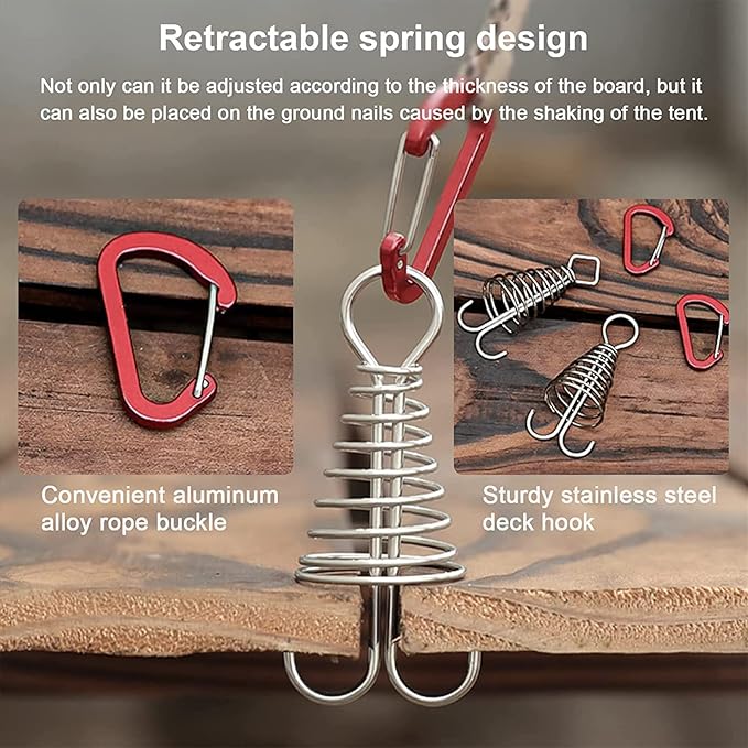 - [Slip & Adjustable Spring]:These deck nails are designed in an octopus shape, and the bottom double hook design creates stability better and prevents the nails from falling off or rotating due to the shaking of the tent. The telescopic spring shape can be adapted to decks of different thicknesses