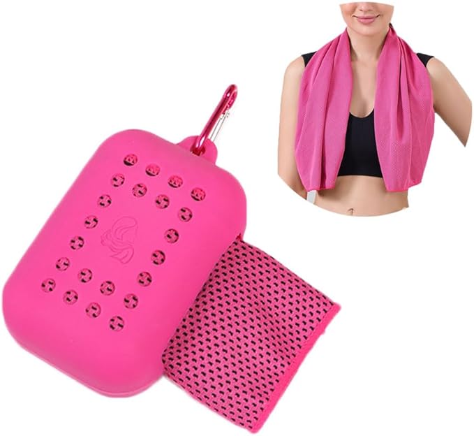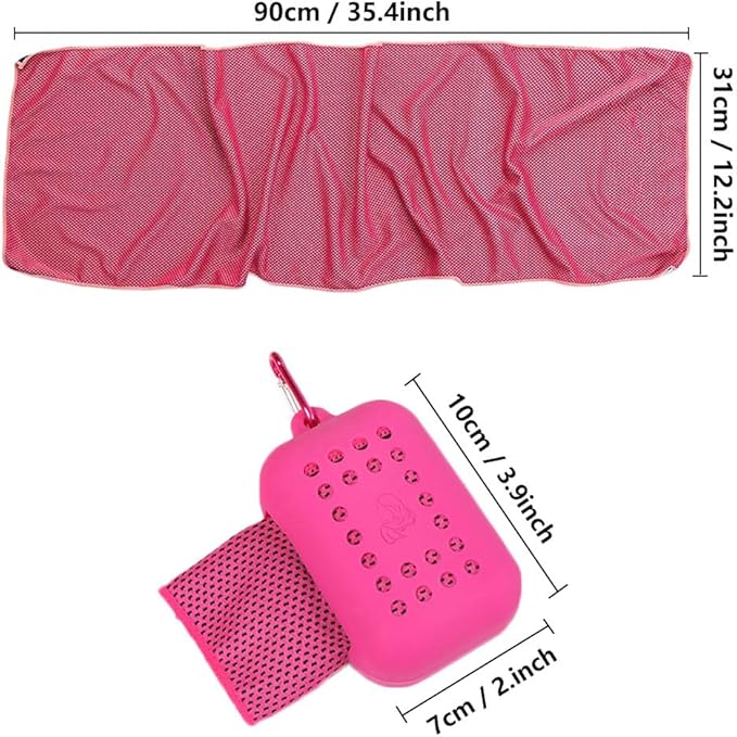 1 Pack Sports Towel with Silicone Storage Bag and Carabiner Clip, Microfiber Cooling Towels, Quick Dry Stay Cool Chilly Towel for Yoga Running, Gym, Camping, Travel Sports Towels, Rose Red