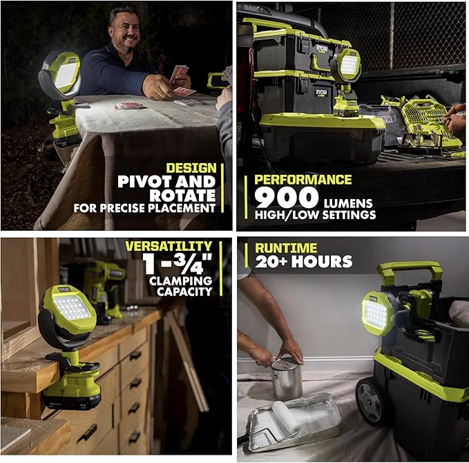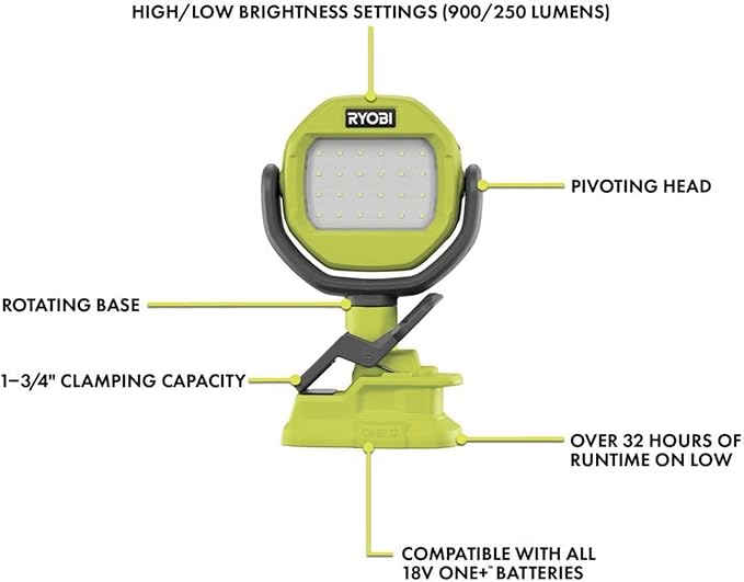 - Maximize hands free use: With this 18V light's ability to clamp to materials and its compact size, you can maximize hands-free use.