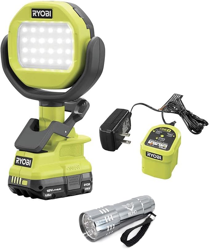 Buho LED Clamp Light Bundle, with 18V Cordless 900 Lumens LED Clamp Light, Pocket Flashlight, 1.5 Ah Lithium-ion Battery and 18-Volt Charger