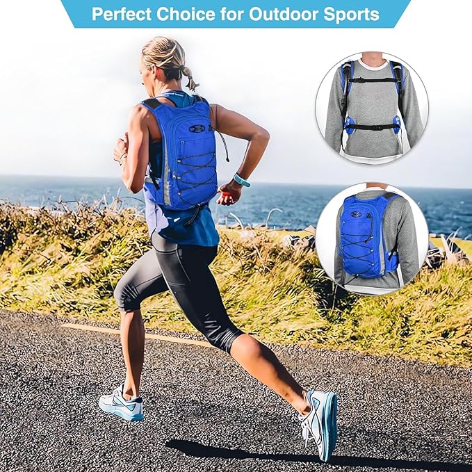 - COMFORTABLE & FIT PERFECTLY - This lightweight hydration bag is the perfect companion for multi-tasking activities. Not only does it come with comfortable and breathable adjustable shoulder/chest straps, this water backpack for hiking also features a breathable mesh padding on the back for better ventilation, which keeps your back cool on hot summer days.