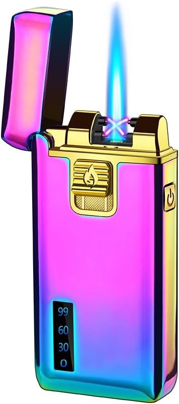 Torch Lighters Dual Arc Lighter 2 in 1 Jet Flame Butane Lighter Electric Lighter USB Rechargeable Lighter Windproof Infinity Lighter Battery Indicator for Camping Indoor (Colorful)