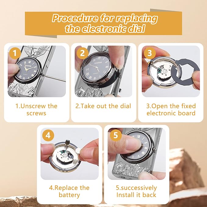 - 🎀【Fashion clock design】This lighter has a clock design in the middle, with a fashionable appearance and also convenient for your daily use. When the lid is open, the clock dial has different color led lights flashing, very cool, very ornamental. Can be taken out at any time to see the time. Luxury and high quality, a great decorative item for your collection.