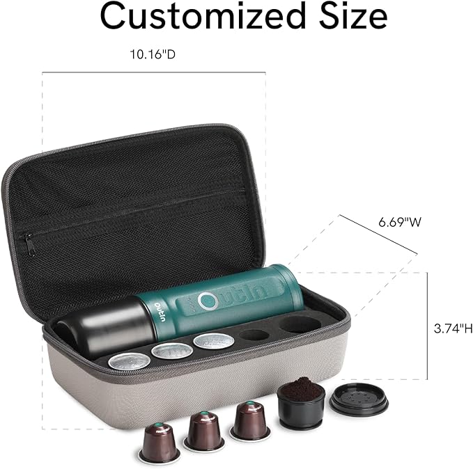 - 【Customed Size & Multifunctional Storage】 Customized nano coffee machine. It can hold 1 nano coffee machine, 4 coffee capsules and 1 powder bin. On the other side, there is a mesh pocket for accessories.