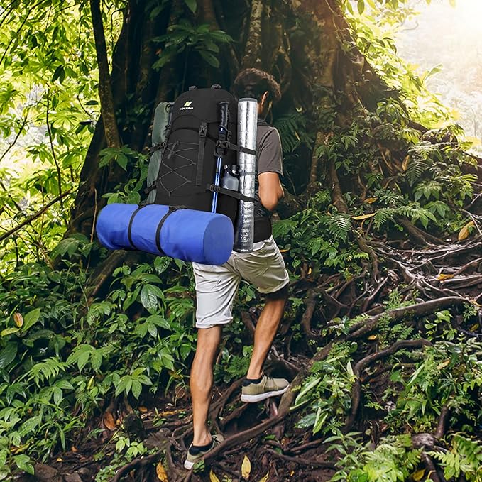 - Waterproof and Durable: Climbing backpack is made of high quality nylon fabric, which is tear resistant, scratch resistant, wear resistant. You can also use our rain cover (our hiking bag comes with a rain cover at the bottom) to further protects your valuables from heavy rain and keeps everything dry