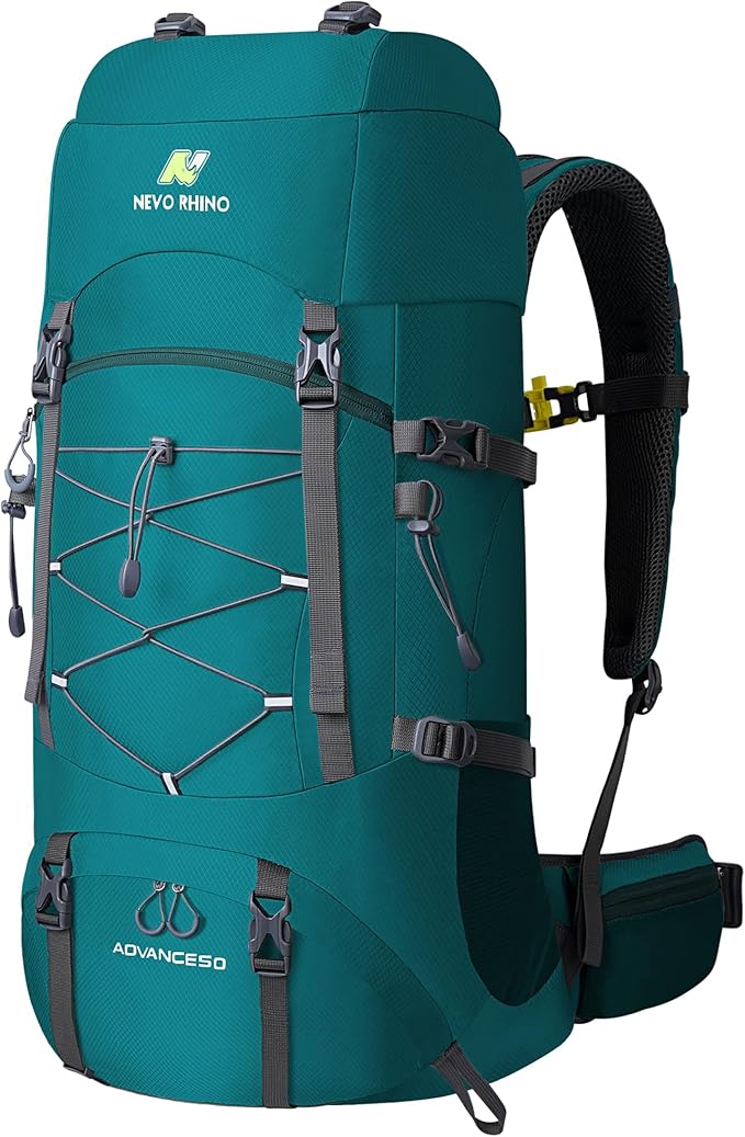 N NEVO RHINO Waterproof Hiking Backpack 50L/60L, Camping Backpack with Rain Cover, Hiking Travel Mountaineering Backpack