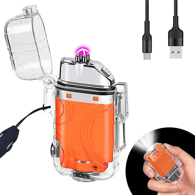 - ✨【Waterproof Design】The arc lighter has a quadruple waterproof design with two sealing rubber rings, metal-ring sealed lighter cover and locking clasp, which can be effectively waterproof when all fastened.