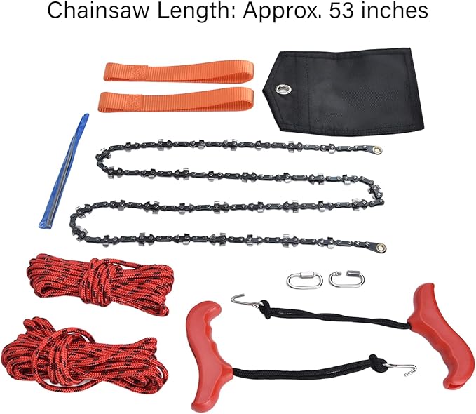53 Inch Rope Saw, Tree Limb Hand Rope Chain Saw, Teeth Blades on Both Sides, Folding Pocket Chainsaw for Wood Cutting, Camping and Field Survival Gear