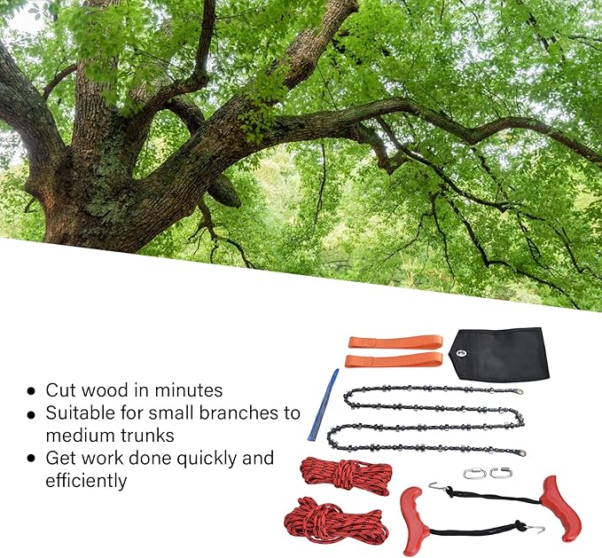 - 🌈【EFFICIENT】: With this rope chainsaw, you can cut wood in minutes, suitable for small branches to medium trunks, get the job done quickly and efficiently.