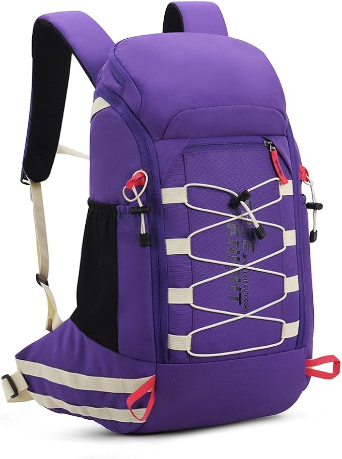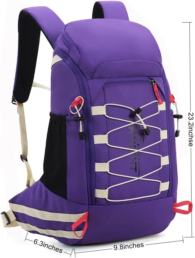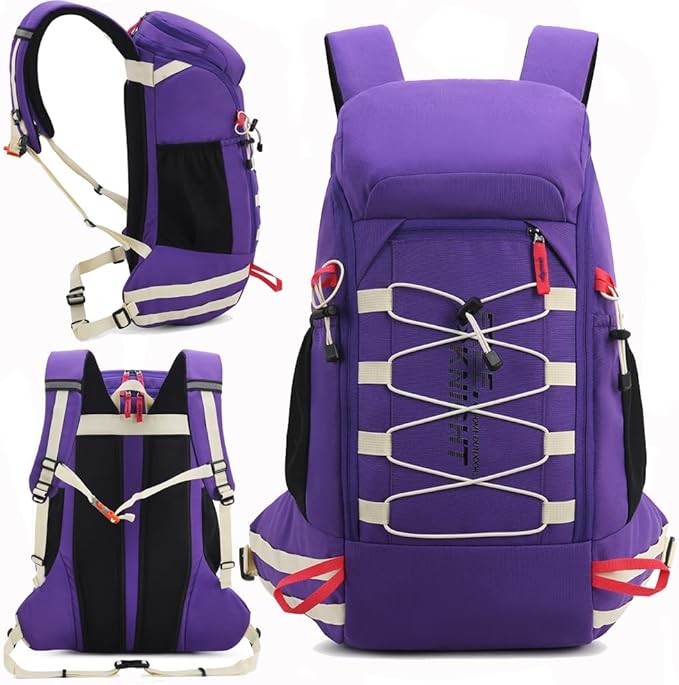 Bseash 40L Waterproof Hiking Camping Backpack with Rain Cover, Outdoor Sport Travel Daypack Rucksack for Skiing Cycling (Purple)