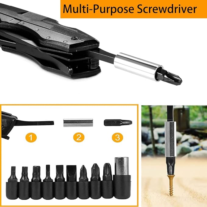 - Practical& Compact: The 9-in-1 screwdriver bit set provides a multi-purpose using. Perfect for Camping, Fishing, Hiking, Outdoor activities, and Home Improvements.