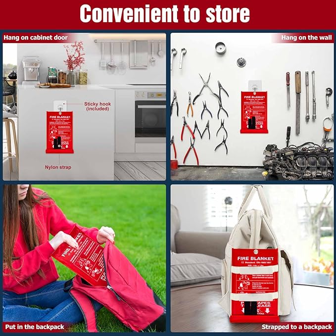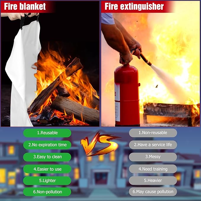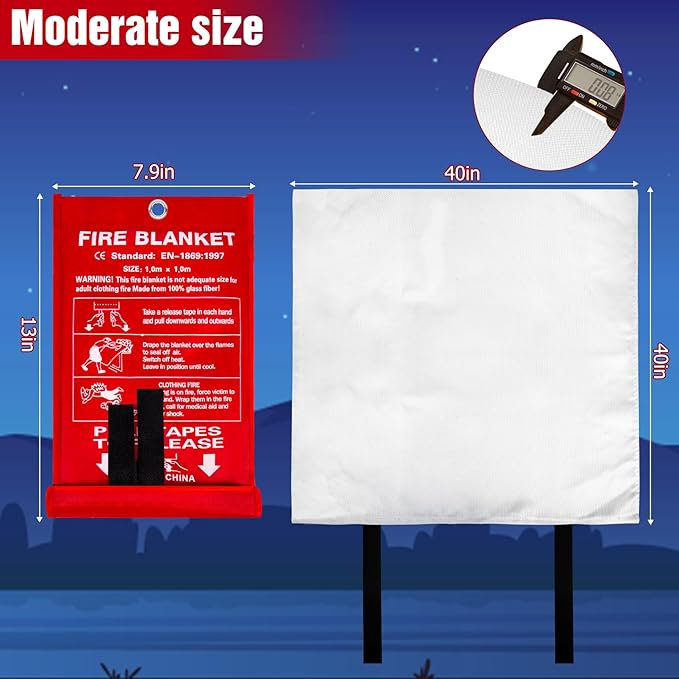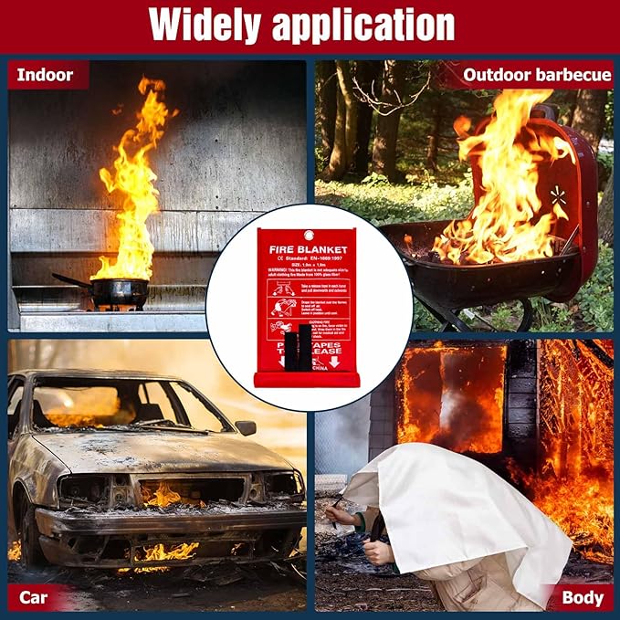 - Moderate size & widely application: Survival fire blanket is 40*40 in and lightweight, you can use it to put out a pot fire in Kitchen. Meanwhile, you can take emergency fire blankets with you when camping or BBQ in case you need them. Fire extinguisher for home can also be used to extinguish electrical fires, such as refrigerator, TV, charging cable, and so on. Note: When extinguishing electrical fire, you need to cut off the power first.