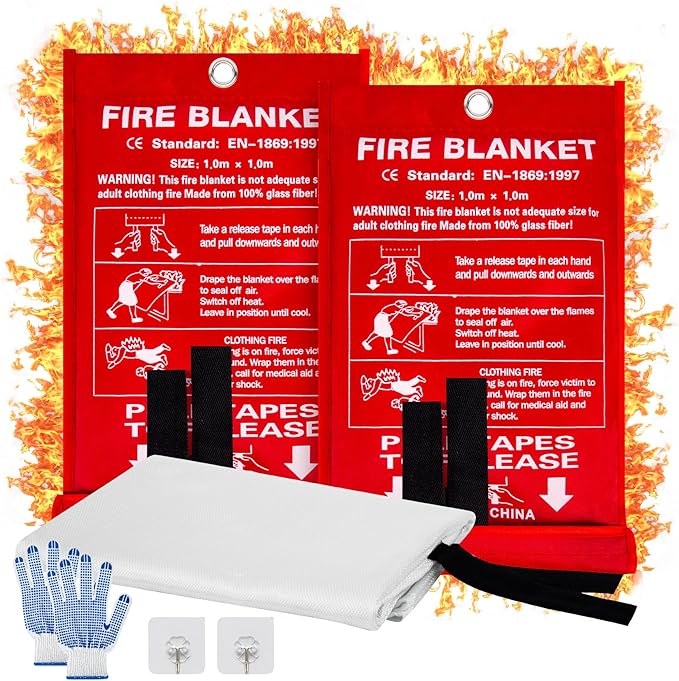 2 Pack Fire Blanket, 40” x 40” Fire Blankets Emergency for Home and Kitchen, Heat Insulation Designed & Flame Retardant Protection Blanket