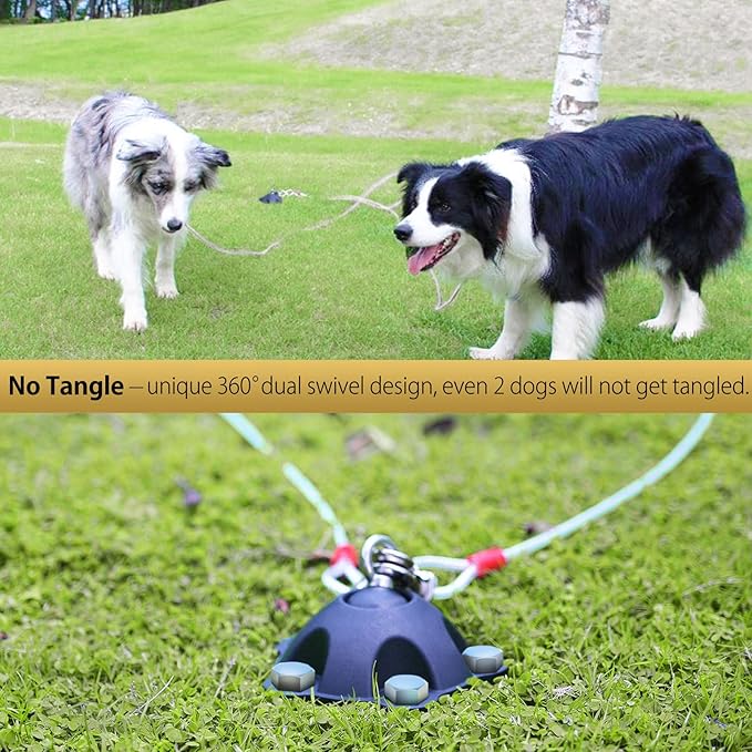 - ❤ SUIT FOR ONE OR TWO DOGS up to 150 lbs.: our 360° Swivel Dog Tie Out Stake works with large and small pets – even cats. Designed for different kinds of animals. It can be used with cats, dogs, horses, goats & rabbits.
